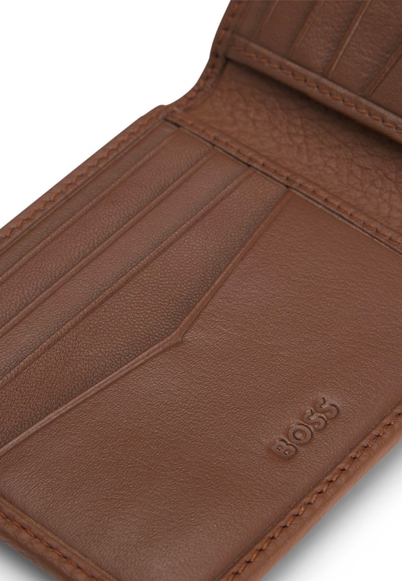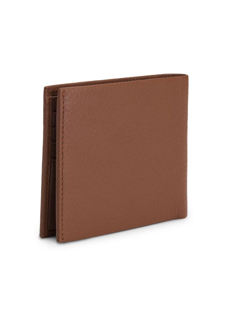 Cartera Plegable De Piel Granulada Con Logo Metálico