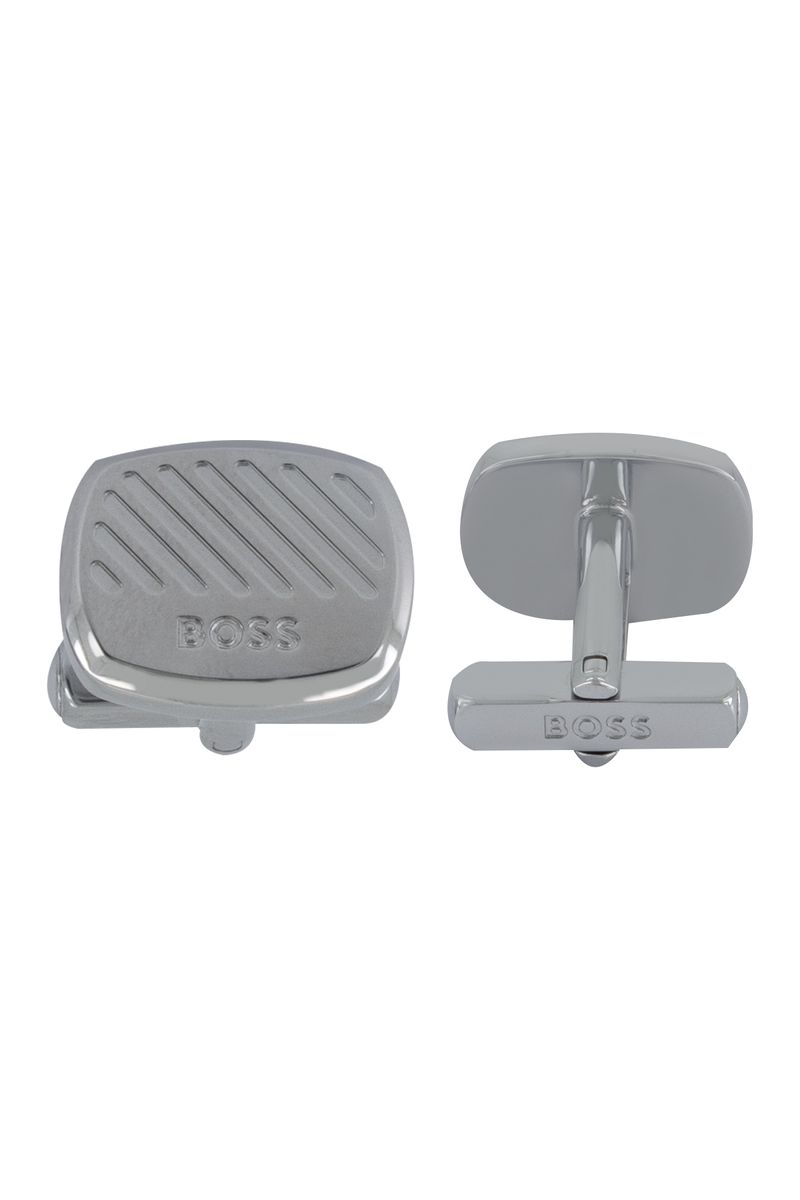 Gemelos cuadrados con inserto de metal texturizado
