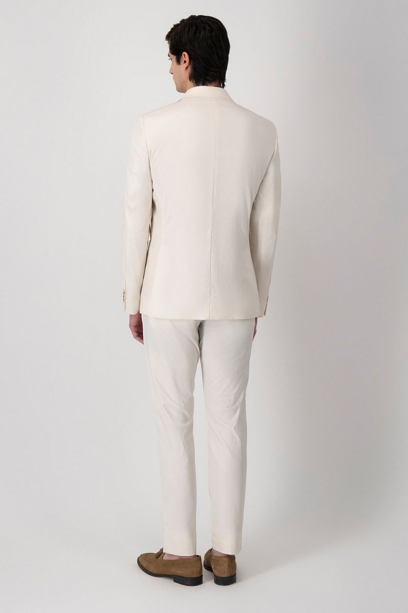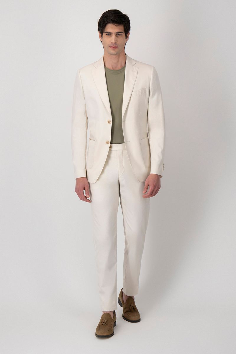Este Traje Slim Fit Roberts en tono marfil es para quienes quieren destacar con elegancia auténtica y una presencia que inspira desde el primer instante. Su color claro transmite frescura y sofisticación, perfecto para eventos de día o cualquier ocasión donde busques un estilo moderno y distintivo. Su confección ligera hace que te sientas cómodo y natural, acompañando tus movimientos y manteniéndote impecable durante toda la jornada. El saco aporta una silueta estilizada que realza tu porte, mientras el pantalón ofrece un ajuste favorecedor y libertad al moverse, logrando un look pulido sin esfuerzo. Además, puedes usar ambas piezas por separado para crear combinaciones versátiles y llenas de estilo. Si buscas un traje que te haga sentir seguro, elegante y diferente, este es el indicado. Es una prenda que enamora desde el primer momento y eleva tu estilo en cualquier ocasión.